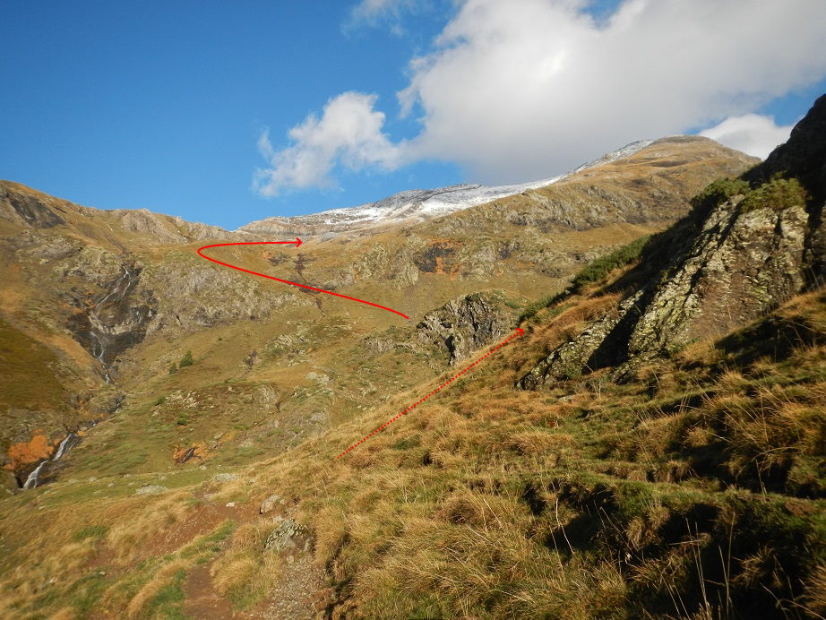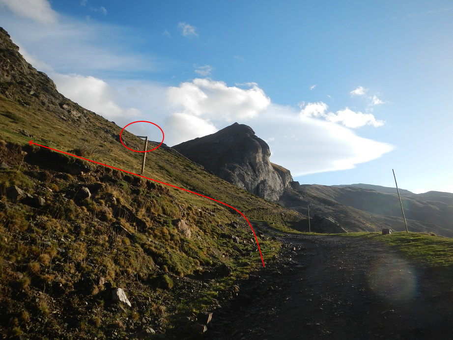 El sendero gira al noroeste, como si nos dirigiéramos al valle de Pineta, pero debemos girar a la derecha en dirección norte.