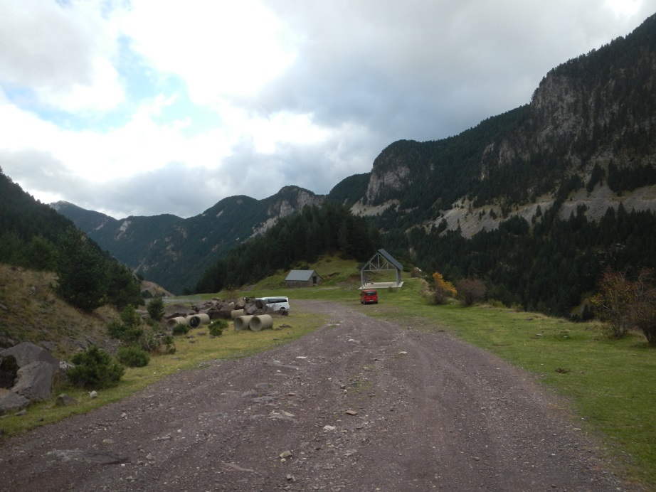 Llegamos a una gran explanada. Es la Borda de Bruned, aquí podemos estacionar el vehículo.