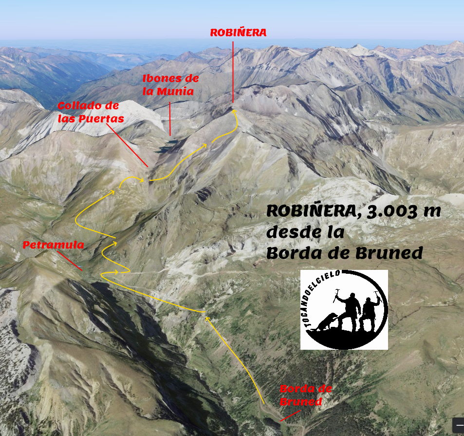 El pico Robiñera está ubicado en la zona central del pirineo de Huesca, entre los valles de Pineta y Barrosa. Desde la cumbre, con buena visibilidad, podremos disfrutar de unas vistas privilegiadas hacia el macizo de Monte Perdido.
