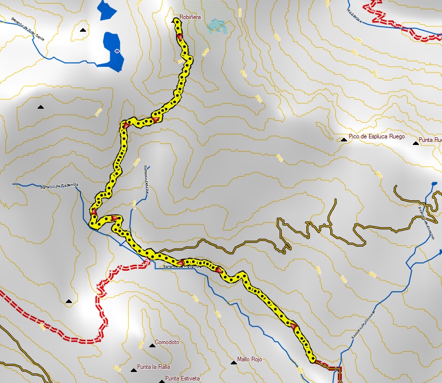 Desde este punto vemos la parte central de la pedregosa pala sur del Robiñera, por donde discurre la ruta.