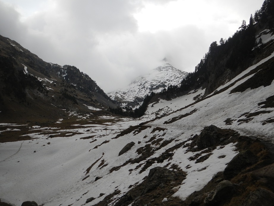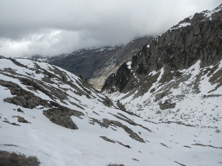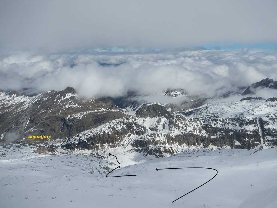 Ahora tenemos casi 1.100 m de desnivel hasta el punto donde acaba la nieve continua, antes de Aigualluts.