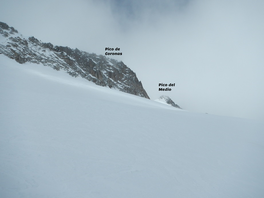Hasta ver el pico de Coronas primero y el pico del Medio después. Debemos buscar el collado del Medio, entre estos dos picos.