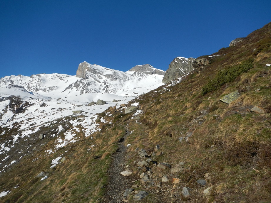 Cuando acaba el corredor giramos a la izquierda. Encontramos primero el tres mil secundario del Pic de la Lentilla.