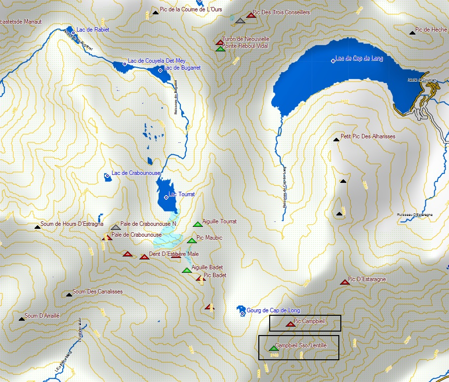 Los picos Campbieil y pic de la Lentilla son los tres miles más meridionales del sector Neouvielle.
