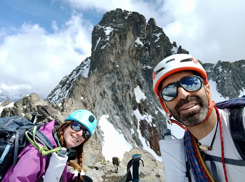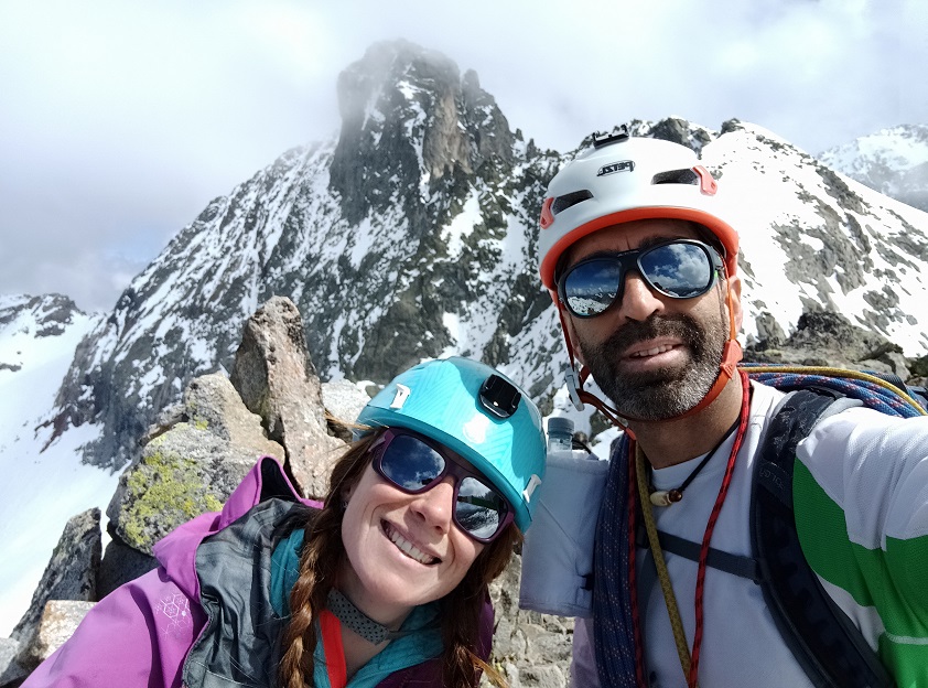Descendemos unos metros hasta que vemos factible volver a ganar la arista. Solo quedan unos metros fáciles para llegar a la primer cumbre del día Aguja Tourrat.