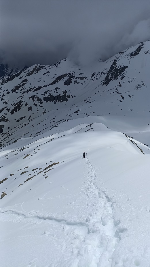 Y ascender la pala de nieve hasta el pequeño collado junto al pico Maubic.