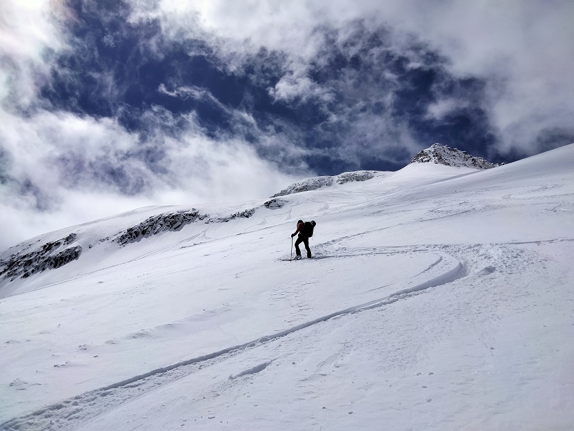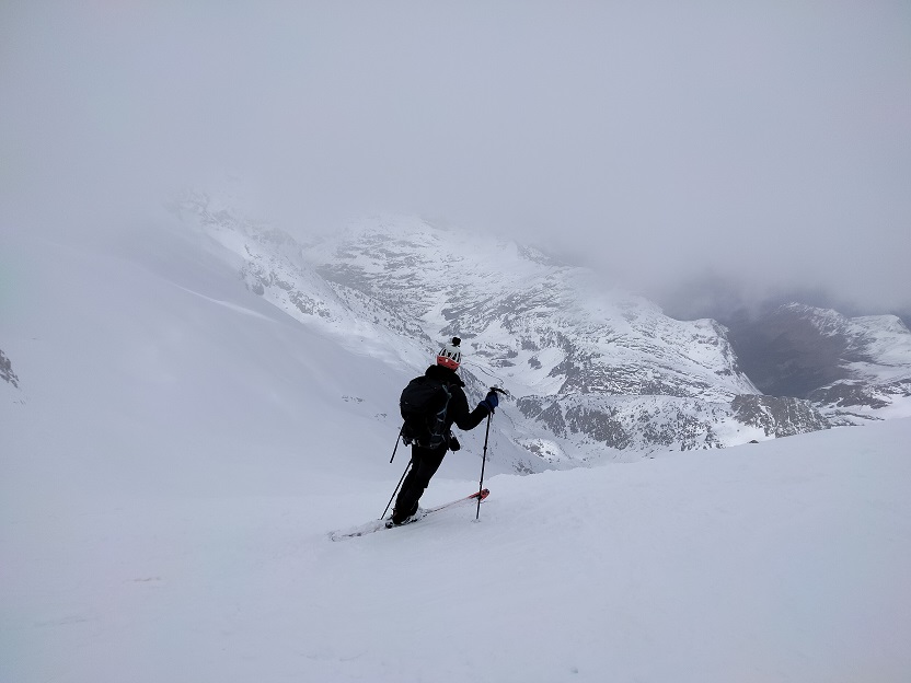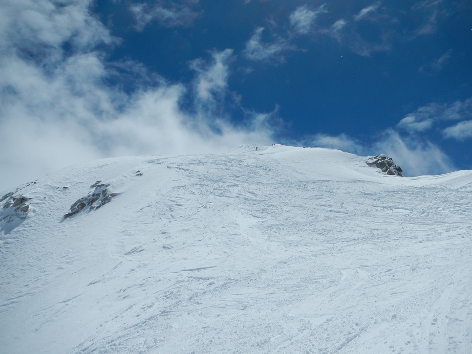 Al llegar al collado giramos a la izquierda para superar una pala de pendiente moderada.