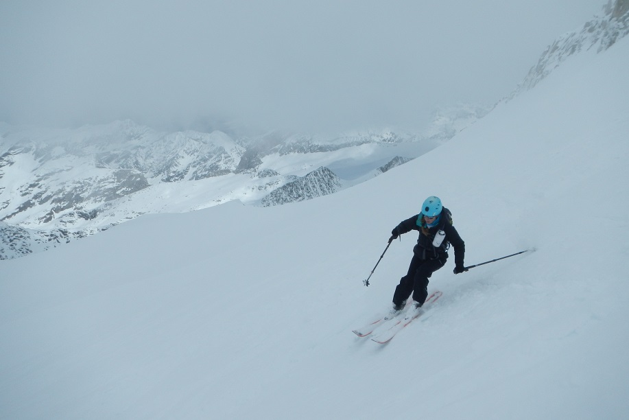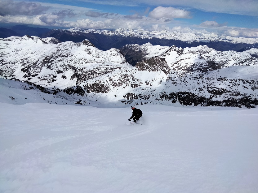 Esquiamos a placer por amplias palas de nieve.
