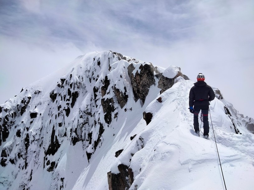 Llegamos así a la antecima. Solo falta superar el Puente de Mahoma. Se trata de una pequeña arista expuesta a ambas vertientes de unos 40 metros de longitud. Se puede asegurar el paso en los abundantes bloques que encontramos en el recorrido.