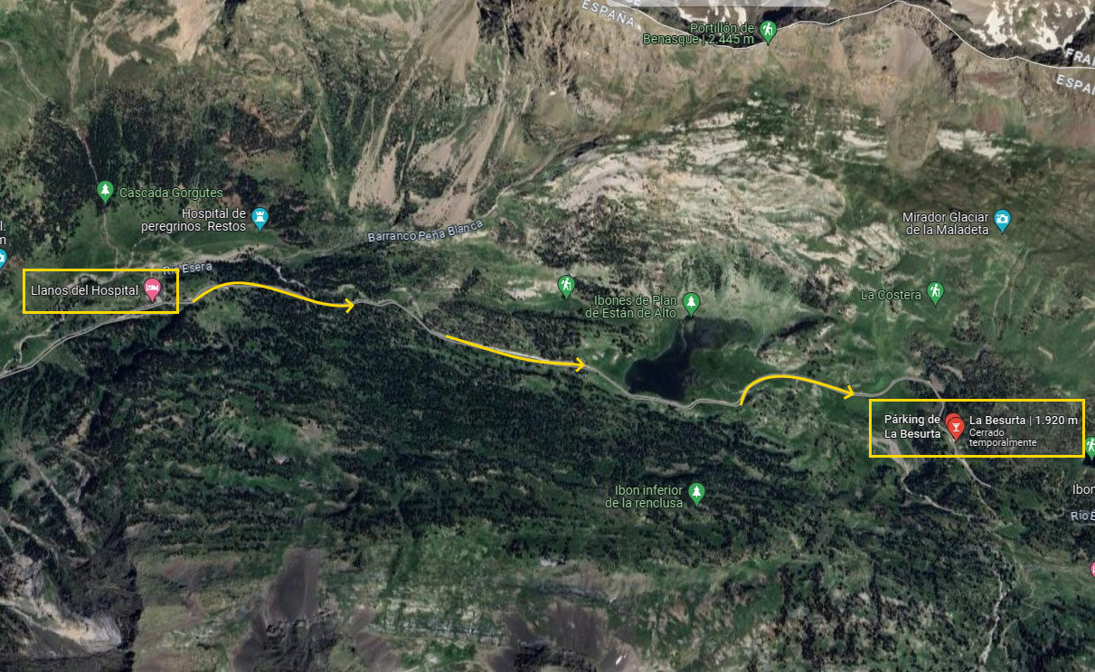 Importante: La carretera que va desde el hotel de los Llanos del Hospital hasta la Besurta puede estar cortada al tráfico de vehículos debido a la nieve y su fecha de apertura varía cada temporada.