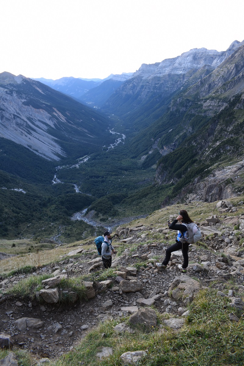 Llegamos por un sendero muy marcado hasta el Balcón de Pineta (2500 m). Uno de los lugares más bonitos de los Pirineos, donde el glaciar de Monte Perdido nos da la bienvenida.