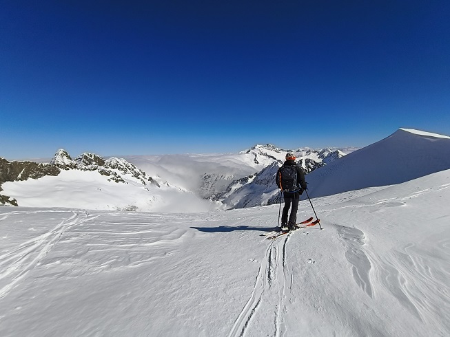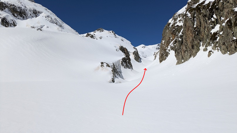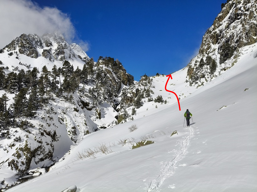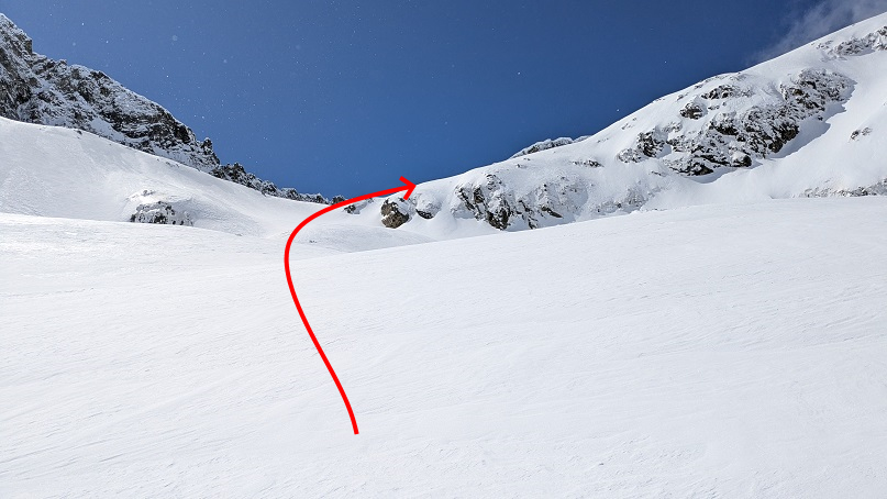Así, llegamos a la base de la pala cimera. Con nieve dura, también puede presentar exposición.
