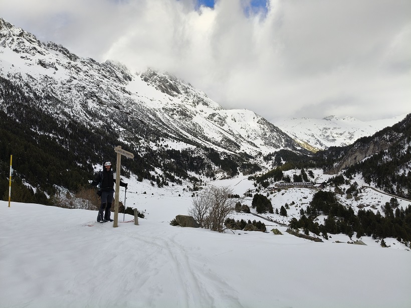 En nuestro caso, comenzamos en el hotel de los Llanos del Hospital, donde ya podemos calzar esquís.