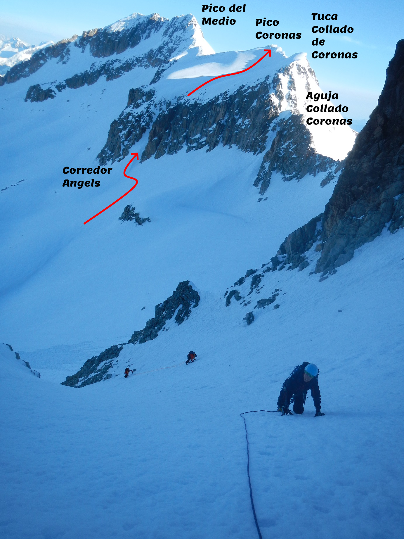 Y a la izquierda del collado de Coronas, aparece el corredor Angels