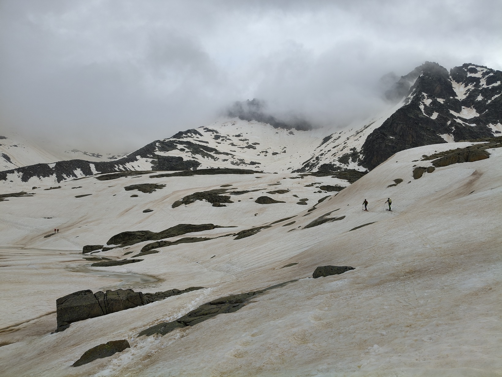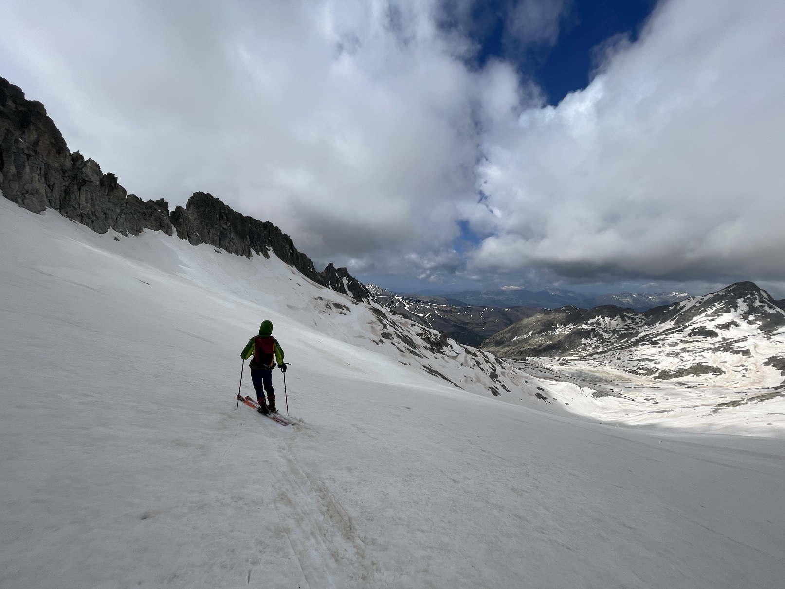 Pero no es hasta el ibón inferior de Coronas donde podemos calzar los esquís