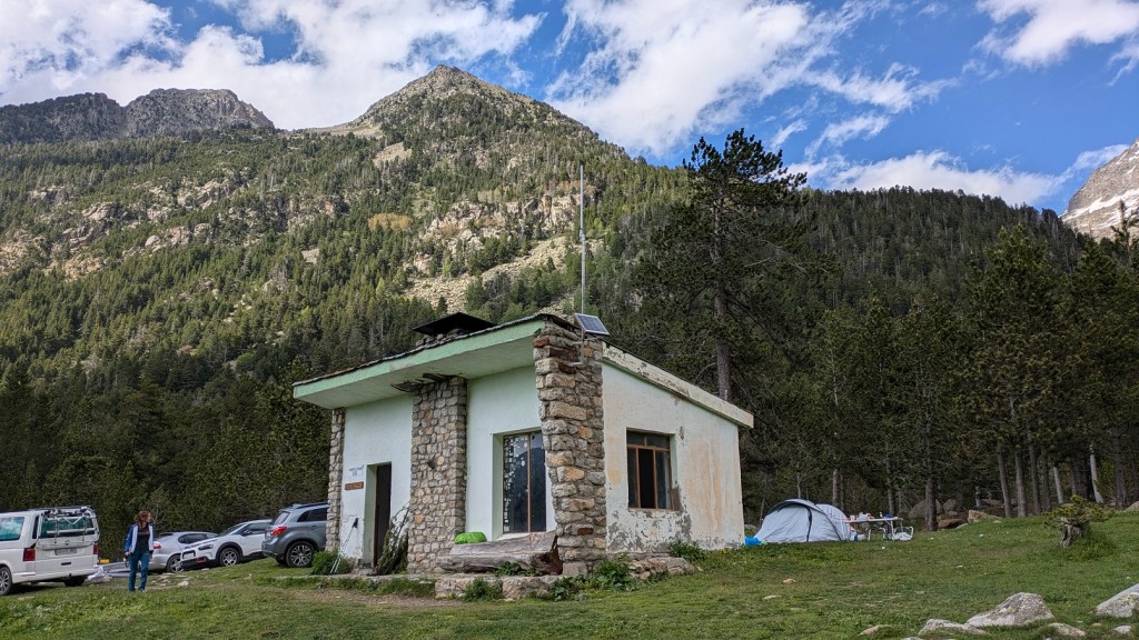 Pasado el embalse de Paso Nuevo, atravesamos un salva aludes de hormigón. Cuando acaba, tomamos un desvío a la derecha que en descenso nos conduce a una construcción claramente visible. Hemos llegado al Pla de Senarta.