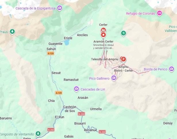 En esta entrada reseñamos la ascensión situada más al sur del sector, accesible directamente desde el aparcamiento de Ampriu, en la estación de esquí de Cerler.